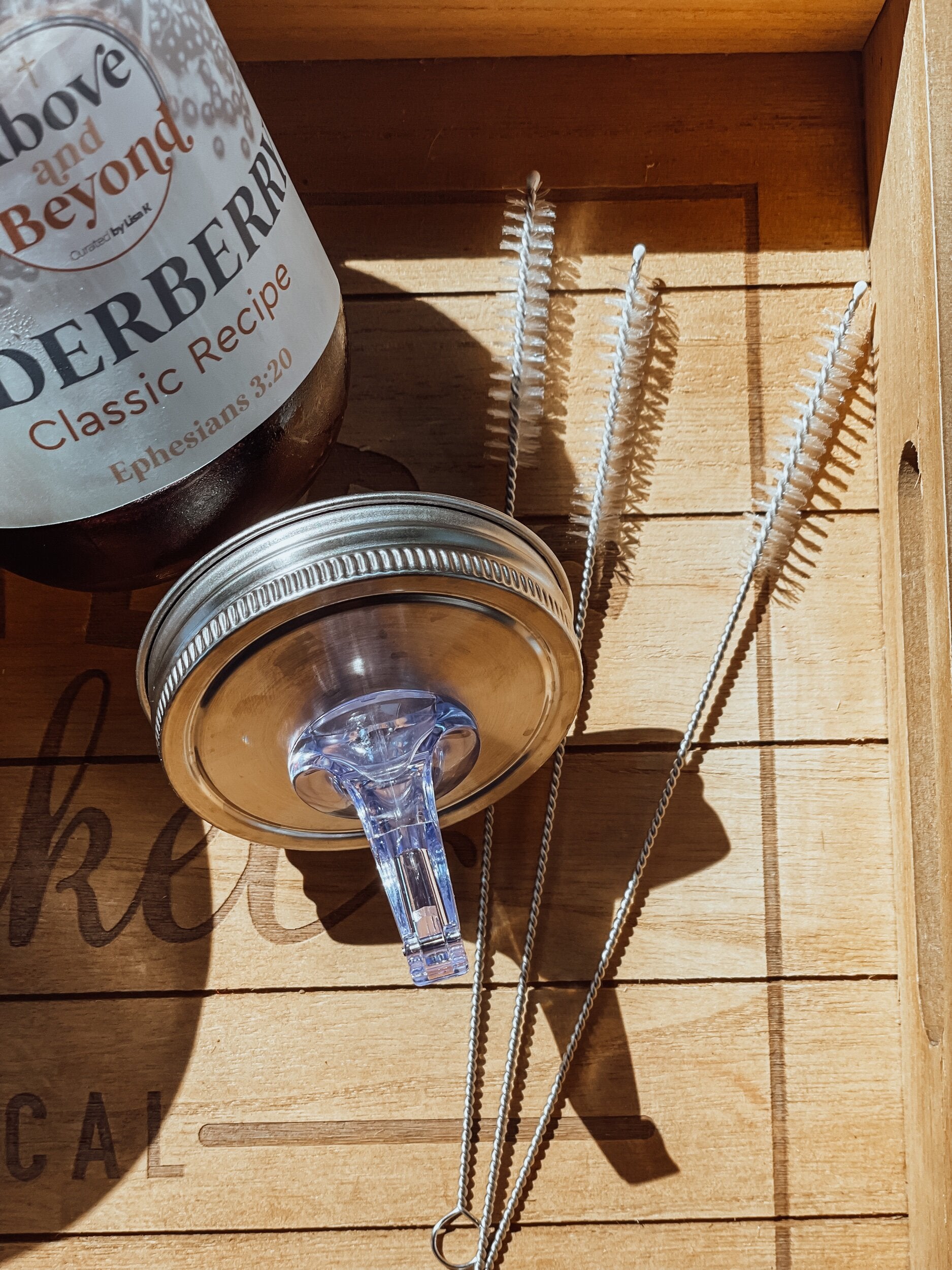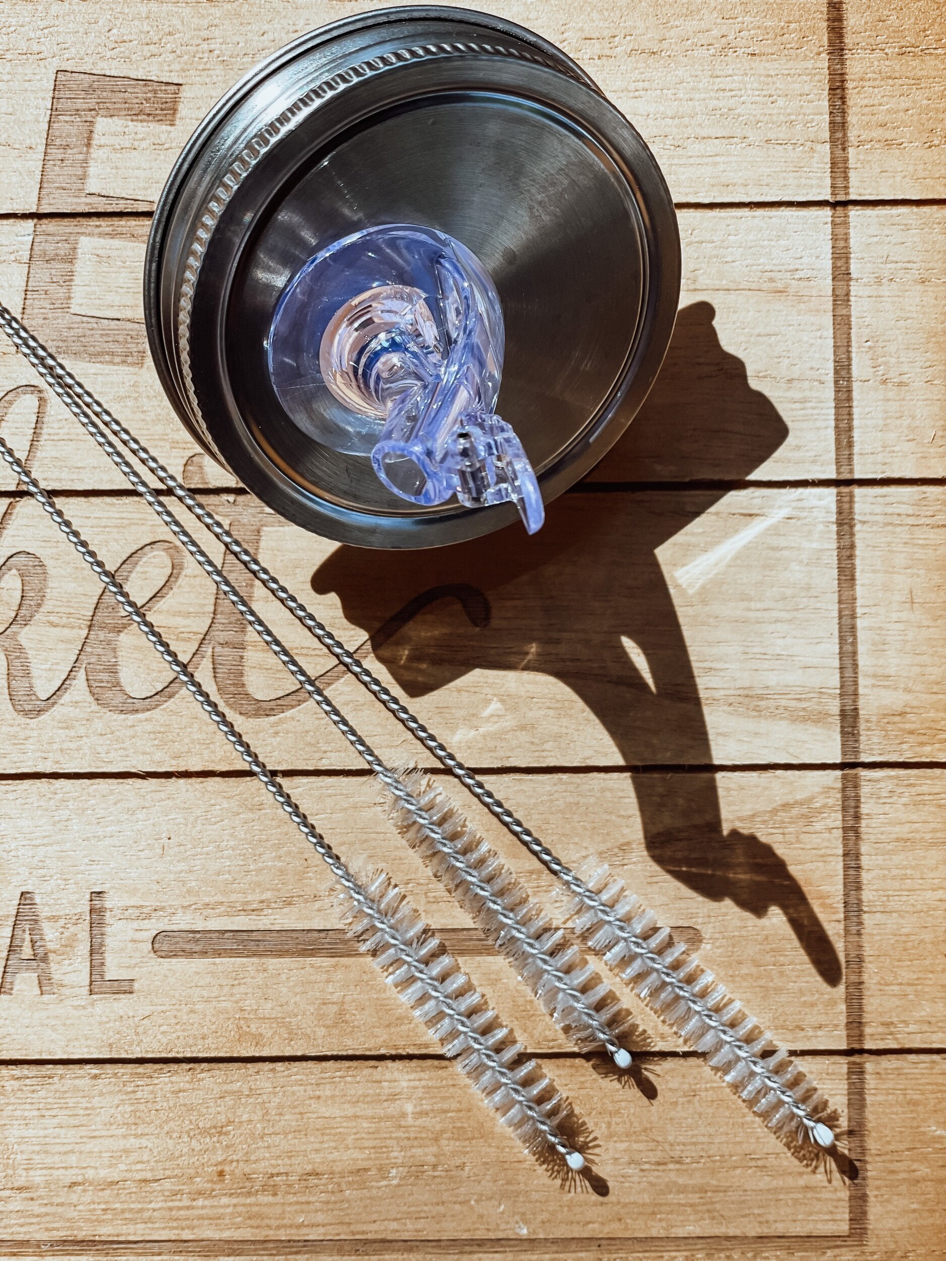 As needed, soak your pour spout in hot soapy water. Use the cleaning brush to scrub inside the spout thoroughly.